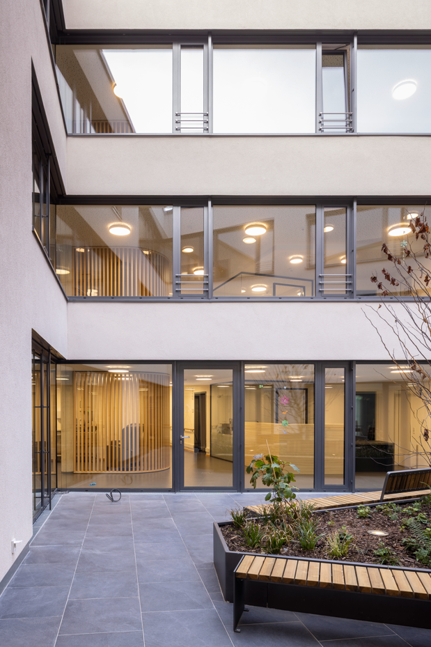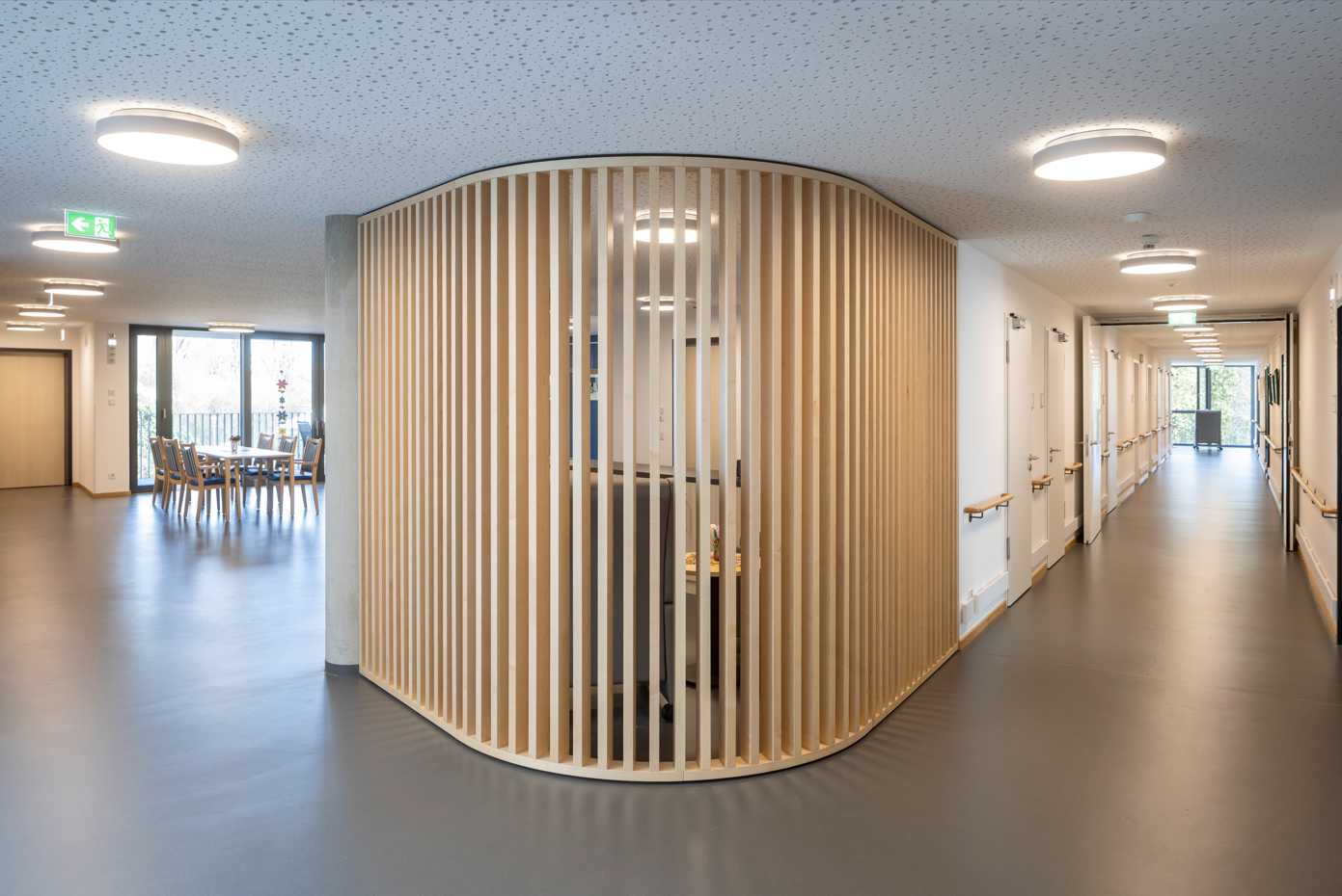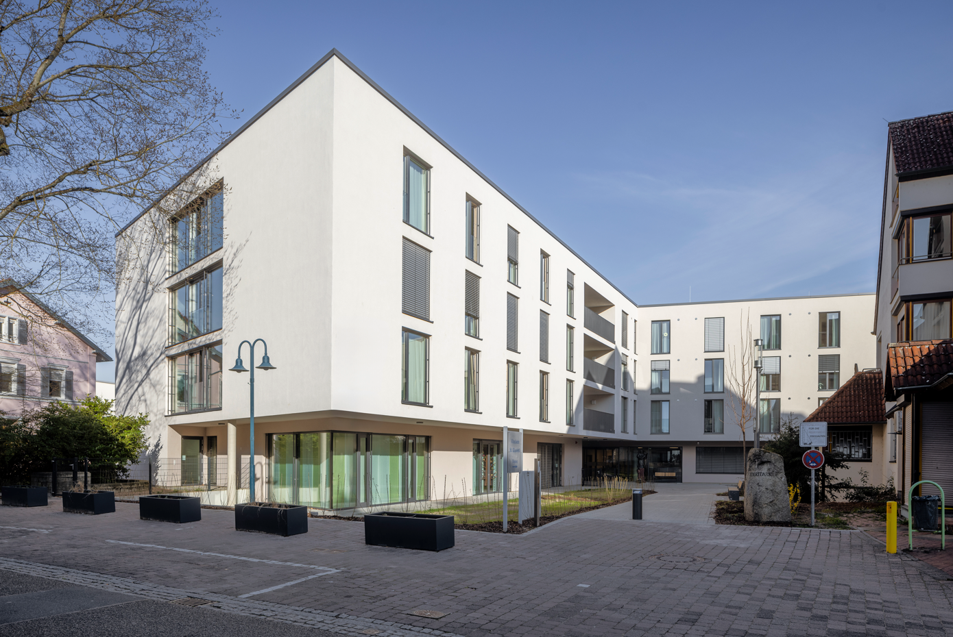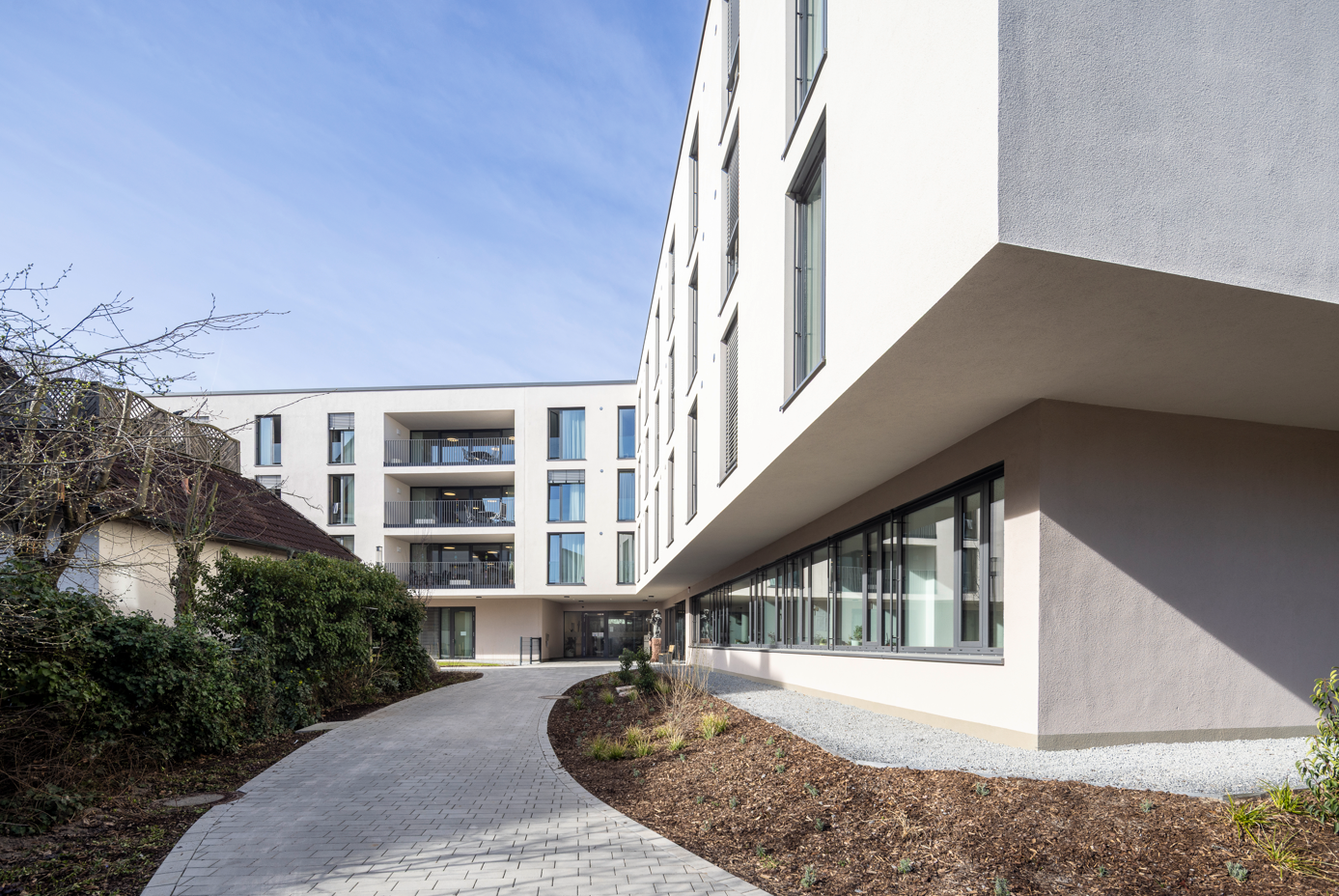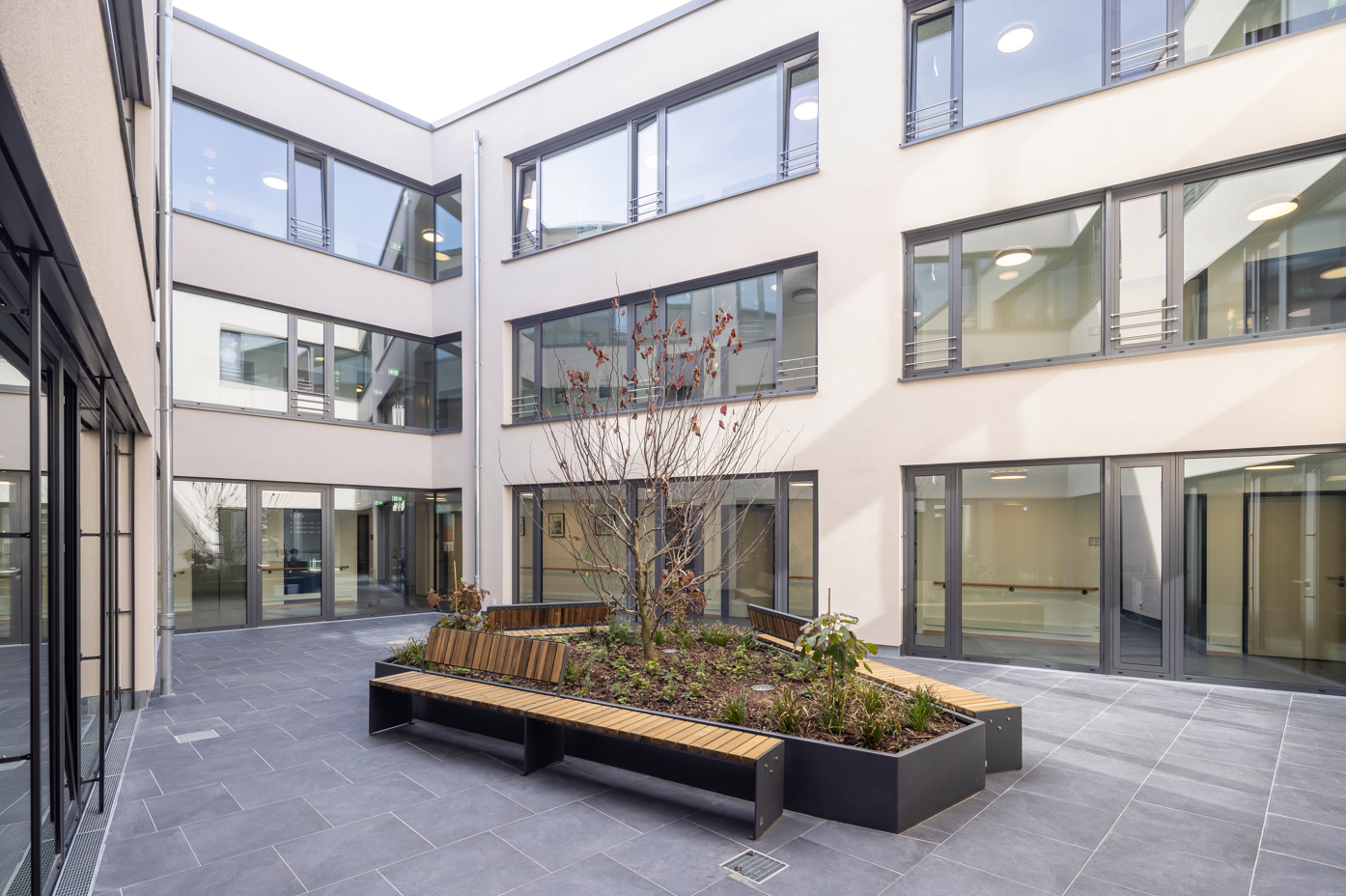 Das Altenheim besteht aus dem 1700 m² großen Erdgeschoss, in welchem sich die Tagespflege, die Kapelle, die Küche, die Cafeteria und die Verwaltung mit ihren dazugehörenden Nutzräumen befinden. Im 1. – 3. Obergeschoss liegen um einen zentralen verglasten Innenhof angeordnet die Zimmer der 99 Bewohner*innen aufgeteilt in drei Wohngruppenbereiche mit mehreren Gemeinschaftsbereichen. Aufgrund des seit 2020 in Kraft getretenen neuen Landesheimgesetzes muss das bestehenden Altenheim St. Elisabeth in zwei Abschnitten neu errichtet werden, da ein Umbau des Bestandes aus technischen und wirtschaftlichen Gründen nicht möglich war.